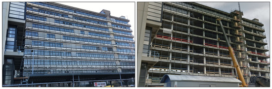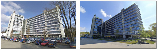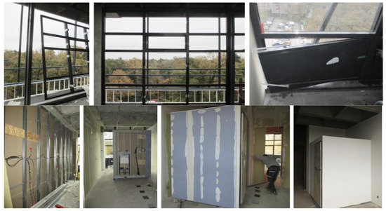 - Step 7: After the completion of the installation of the new panels, the self-inspection of the building facade through thermal and laser scanning was carried out. The measured values (i.e., the sizes of the gaps) were checked to assess if they were acceptable (within the tolerance limit), to avoid thermal bridges, airtightness, and leakages, and thermal scanning was performed to identify thermal bridges. With a thermographic camera, infrared scanning was performed for quality control, resulting in thermal imaging that indicated whether there were thermal/energy losses in the new facade. The INSITER procedure for assessing the impact of thermal bridges on the thermal transmittance of the building envelope relied on infrared camera measurements. This approach was implemented in a room within the University of Twente building, featuring one external wall and three internal walls. The inspection aimed to confirm the presence of a thermal gradient of approximately 10 °C between the interior and exterior. Typically, a well-insulated facade ensures this thermal gradient; otherwise, the room needs to be conditioned to identify thermal bridges (Figure 6).