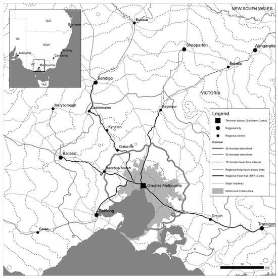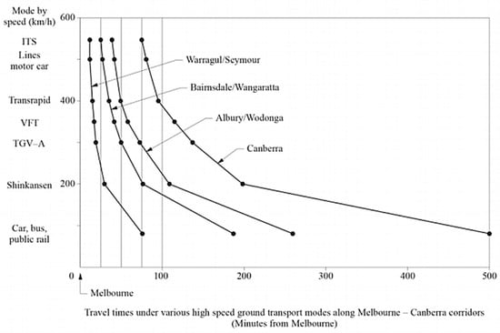 Space-shrinking impacts of high-speed ground transportation for Victoria’s regional cities (source [80], Figure 1).
