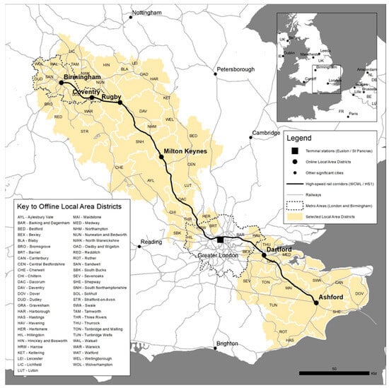 Selected HSR corridors and LADs in southeast England, United Kingdom. Source: the authors.