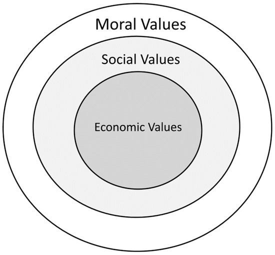 The basic characteristics of values associated with economically, socially, and morally motivated decisions are shown in Table 1. Economic values are individual, instrumental, and impersonal—the center column of Table 1 [34]. Economic relationships are instrumental in that they are means to ends rather than the goals or ultimate objectives to be achieved. For example, profits provide money for hiring workers and acquiring new technologies as a means of increasing productivity. Economic investments are made with the expectation of receiving something of greater economic value in return. However, when returns on economic investment are monetary, the returns have no value other than the value of whatever money can be used to acquire, either immediately or at some time in the future.