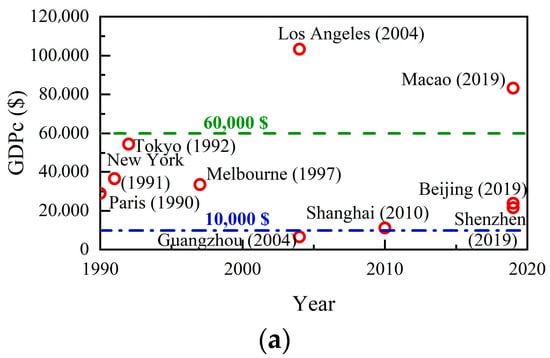 Accordingly, a city, as a constitutional element of a region or state, may not synchronize with the state or region to which it belongs, in terms of the socio-economic development process and the accompanying evolution of UWC. Even in the same state or region, the socio-economic development processes, water resources conditions, and urban functions of different cities may vary significantly. In the case of developed cities, like Beijing, Shanghai, Guangzhou, Tokyo, and Melbourne, the city’s socio-economic development is generally more advanced than the state or region average. In addition, differences in water resource conditions between the city and the broader state or region can result in the distinct evolution of water-consumption patterns.