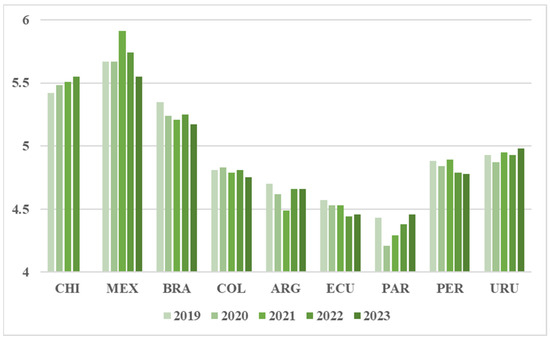 Based on the indicators of production and export indexes, a positive trend is observed in the performance of the AFSC in the long term, which reveals the potential and profitability to implement financial investments in companies in this sector, even in the face of catastrophic scenarios [77]. Our results indicate that concerning the market logistics index, the trends during the start of the pandemic have remained constant and growing in cases such as Chile, Brazil, and Mexico.