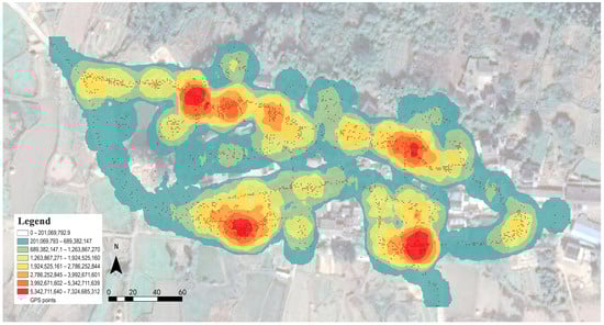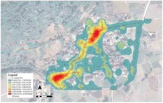 Heat map of villagers’ activity distribution in Guanlu Village.