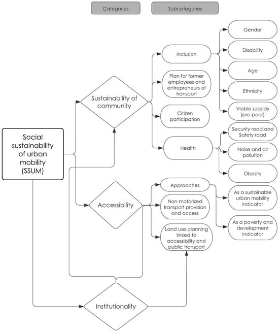 Synthesis of the conceptual framework for social sustainability in urban mobility. Source: Own elaboration based on [17].
