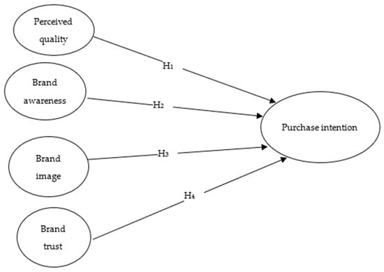 Regarding brand awareness, it is defined as the ability of a potential buyer to identify or be aware that a brand belongs to a product category. It also refers to the memorization and recall of the brand [30]. Various experts have substantiated the correlation between brand awareness and purchasing intentions. Tariq et al. [33] and Noorlitaria et al. [34] both support the idea that brand awareness is closely connected to purchasing intentions. In this sense, it was established that: