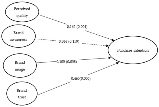 Coefficients—Significant influence of each dimension of brand equity on purchase intention.