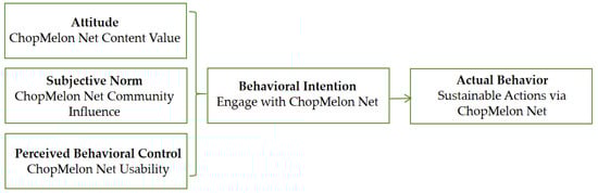 Schematic diagram of the theory of planned Behavior (TPB) applied to the ChopMelon Net.