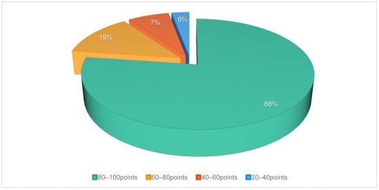 From Figure 8, we can see that more than half of the users of ChopMelon Net think it is highly effective in helping to understand and solve real social problems (with a score of 80–100), while 19% of them also think that it is effective (with a score of 60–80), showing that most of the users hold a positive and favorable opinion of ChopMelon Net. However, there are also 7% of users who think it is average (with a score of 40–60) and even 6% of users who think it is low (with a score of 20–40). This shows that although most users are satisfied with the effectiveness of ChopMelon Net, there are still some users who have reservations or negative attitudes toward its effectiveness.
