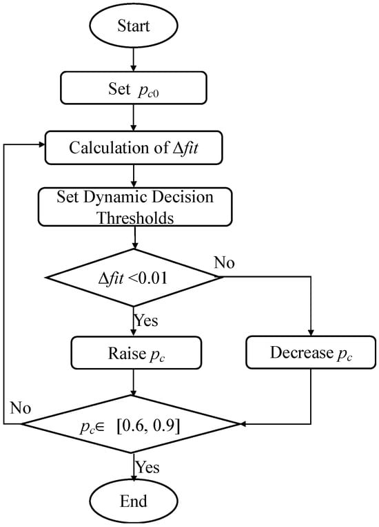 In FJSP, PMX might limit the diversity and exploratory potential of solutions. Bandaru et al. [48] optimized GA for single-objective optimization problems by modifying the SBX (Simulated Binary Crossover) and mutation operations, building in an adaptive mechanism. Srinivas and Patnaik [43] proposed an adaptive crossover and mutation rate for GA, and Hinterding et al. [49] confirmed the rationality and effectiveness of dynamic adaptive crossover rate strategies. Eiben et al. [50] reviewed various adaptive mechanisms. Semenkin and Semenkina [51] explored self-configuring GA with improved uniform crossover operations. Watanabe et al. [52] proposed a modified genetic algorithm with an adapted crossover operator and adaptive search area specifically designed for job-shop scheduling problems to improve the efficiency of solving scheduling issues. Viana et al. [53] likewise improved GA, combining local search strategies and multiple crossover operators for the job-shop scheduling problem, enhancing the quality of algorithm solutions and search efficiency and increasing the precision of job-shop scheduling problem solutions.