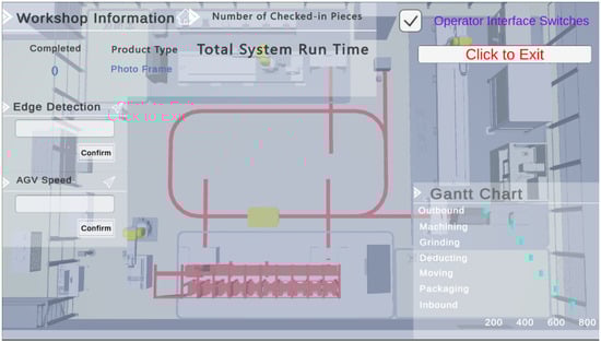 Initially, the application layer of the solid wood panel processing system is established. This application layer facilitates simulation functionalities, allowing for inputting AGV speeds on the interface and conducting production simulations at corresponding speeds. It also enables simulations under varying workflows and quantities of processing equipment. This simulation system allows for testing the intelligent scheduling algorithm performance even before the actual production line (APL) is constructed, greatly enhancing the production sustainability. In reality, setting up a new production line entails high costs, whereas building a simulation system can significantly reduce production expenses and ensure sustainable production practices.