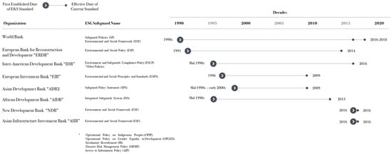 ESG safeguard timeline. Own elaboration based on various documents [8,10].