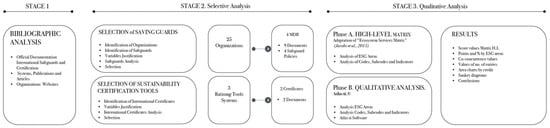 The aim of this study was to determine the degree to which the ESG safeguards used by MDBs in the design and implementation phase of infrastructure projects of all types are related to the credits that two internationally recognized and prestigious international systems use to determine the degree of sustainability of infrastructure projects. In the first stage, by way of bibliographic analysis, all the published documentation on sustainability certification systems was reviewed, as well as the MDBs’ safeguard policies, in order to understand their scope. In the second or selective analysis stage, a series of variables were utilized to select the entities to be reviewed. In the third or qualitative analysis stage, two different tools were used. Firstly, a high-level matrix was created, which was a simplified version of the “ecosystem services matrix” [46], in which the relationship between safeguards and sustainability certification systems was analyzed and contrasted in a second phase of this stage by means of qualitative analysis using atlas ti software. In this last stage of qualitative analysis, it was necessary to define the indicators that allowed the coding and subcoding of the documents to be studied. These indicators, as well as the codes and subcodes generated, are available upon request.