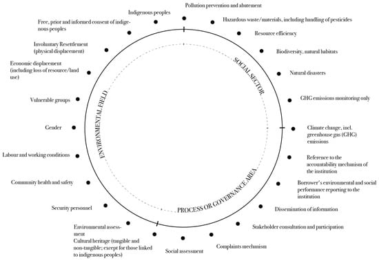 The safeguards designed by MDBs generally do not follow international environmental and social standards but only monitor the minimum requirements among member countries [21]. The two authors of [21] also discuss accountability mechanisms with reference to the sustainability of projects funded by these entities and how they could be more effective. MDBs often play a key role in helping the recipient country improve socioenvironmental planning by establishing or reinforcing environmental and social requirements [22].