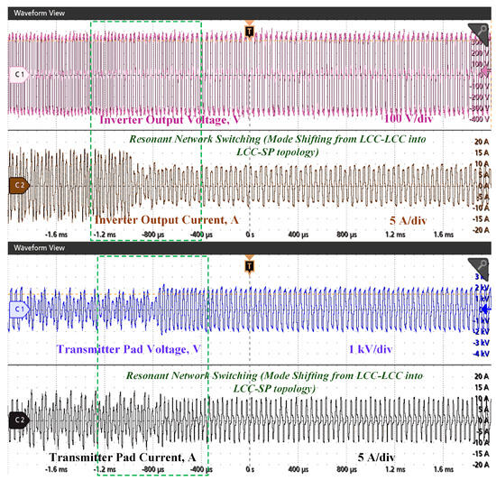 Experimental curves of a proposed charging system during mode switching (D–LCC to LCC–SP).