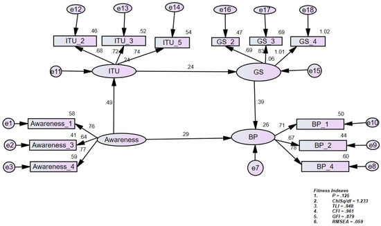 | H7: Awareness -> ITU -> GS -> BP | 0.042 | 0.045 | Supported | Full serial mediation |