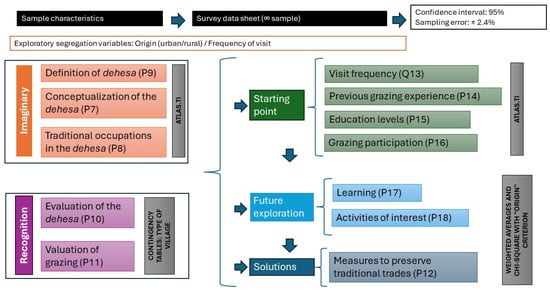 This study was based on the premise that in order for individuals and communities to commit to the care and transmission of heritage, it is first necessary that they know, understand and value it [44,58]. For this reason, the main research objective was to determine the knowledge and appreciation that university students have of the dehesa and the ancestral practice of pastoralism. More specifically, the aim was to detect whether there is a global conception or whether, on the contrary, there are biases depending on parameters such as origin or frequency of visits to the areas.