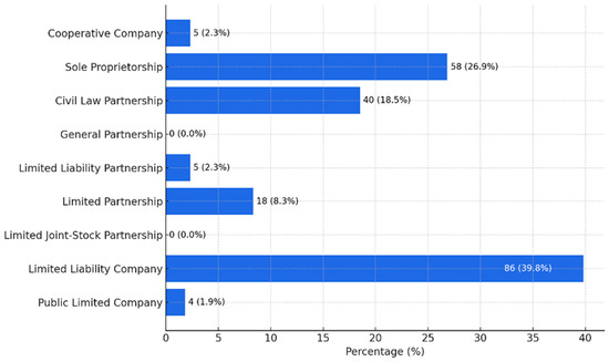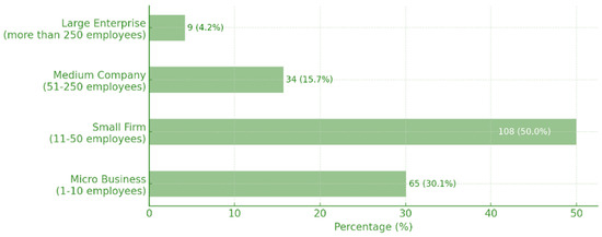 The general characteristics of the surveyed sample (Table 3 and Figure 3, Figure 4, Figure 5 and Figure 6), in particular featuring the companies’ respondents’ professional experience (Figure 3), are detailed below.