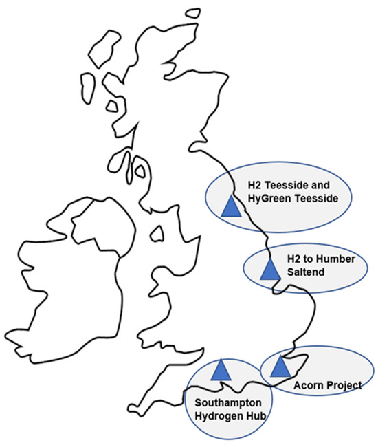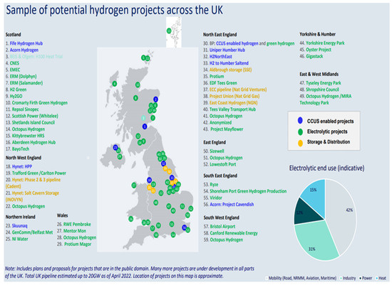 Planned and proposed hydrogen projects in the UK. Source: [41].