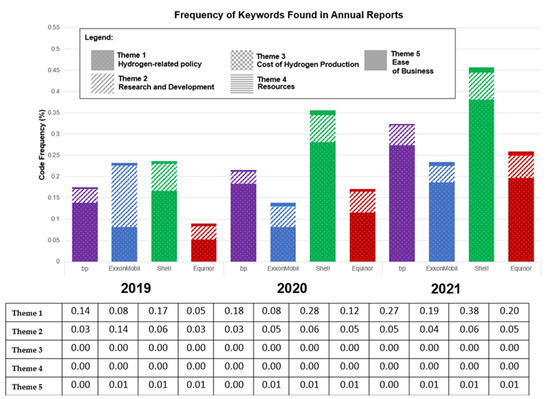 The two types of publications that were collected from companies are annual and energy-related reports. As described in [63], annual reports serve as the primary communication tool for stakeholders, and they comprise the company’s vision and directions that are relevant to readers. However, additional information was used for analysis as most companies have also published other reports to support their vision, depending on the area they cover. Therefore, to support the data analysis specifically on hydrogen technology, the energy-related reports were used as a second reference source, providing more detailed information on the transition to hydrogen.