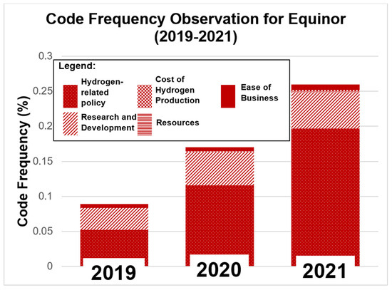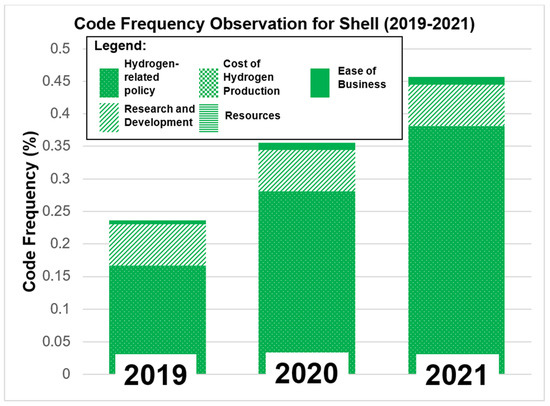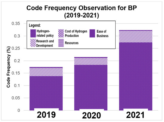 - Cost of hydrogen—As cost is one of the challenges in hydrogen technology adoption [17,29], this theme looks for initiatives that the company is taking to reduce the production costs of adopting the technology. This includes the government’s funding initiative, as announced in the UK Hydrogen Strategy document.