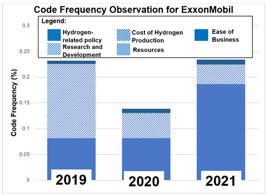 A total of 19 principal codes were examined for this study, supported by 13 sub-category codes for the coding analysis process. Some terms were excluded from use as they led to irrelevant data. For example, the word ‘sustainable’ was removed after it was found to be associated with financial risk. Five themes were compiled from the list to organize the codes to fit the appropriate category: hydrogen-related policy, research and development, cost of hydrogen production, resources, and ease of business. Table 6 shows the keywords examined for this study.