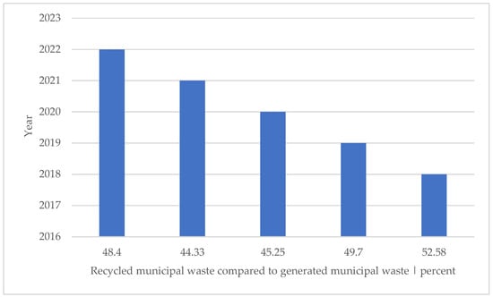The first figure (Figure 1) shows the percentage of municipal waste recycled compared to municipal waste generated. In 2022, it was more than 4 percent less than in 2018.