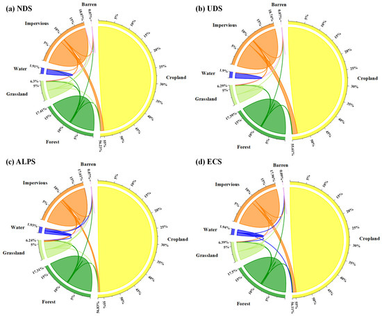 Land Transfer under Four Scenarios (NDS, UDS, ALPS, ECS).