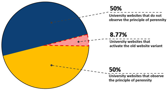 From the analysis of the websites of the state universities, only 27 websites (representing 50%) fulfill the principle of permanence as they archive on the website the content considered relevant, and 5 of them even have the old version of the website (Figure 10).