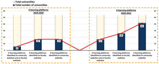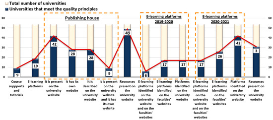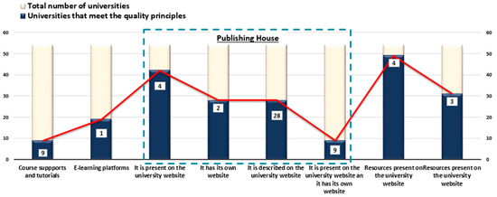 As a working procedure, the accessibility of each university’s website was checked from the point of view of the general content—faculties, study programs—but also from the point of view of the resources made available for students to the e-learning platform, publishing house, library, and scientific databases.