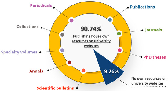 The university website, since its appearance, has become an integrative access portal [19] to the university’s learning and research resources, providing access to relevant information about all specific activity segments, including documentation resources: e.g., university library, databases, institutional digital repositories [20]. This allows students and researchers to access and use all the available resources in an efficient and coordinated manner [21].