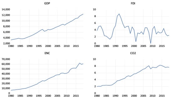 GDP, FDI, energy consumption, and CO2 emission (source: [64]).