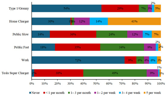 3] shows that vehicle owners most often use their own home chargers, with publicly available chargers being the next most common option. Surprisingly, EV owners do not frequently charge their vehicles at work, as illustrated in