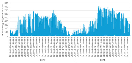 The third dataset includes hourly PV (photovoltaic) generation data from the company’s RES installation. This PV system, with a peak power of 1.16 MW, is located on the roof of the warehouse and is connected to the company’s medium-voltage (MV) grid.