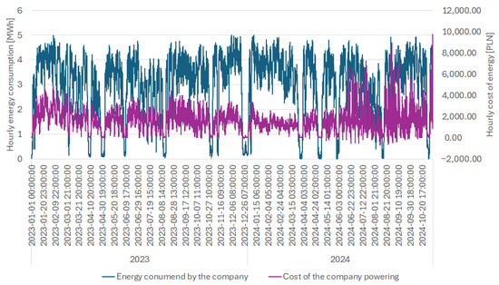 The materials used in this paper are sourced from two categories: restricted sources: a company’s databases—this refers to a Polish food producer that has its own renewable energy sources (RESs) and an EV charging station on-site; open sources: the Intrastat Portal, specifically data on electricity prices for different hours of the next day [