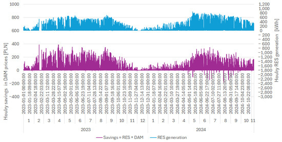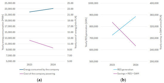 | Year (First 10 Months) 1 | Energy Consumed by the Company [MWh] | Cost of Powering [mln PLN] | RES Generation [kWh] | Savings = RES × DAM [PLN] |