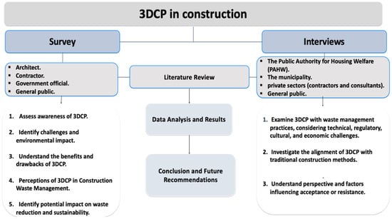Despite the advantages of 3DCP in reducing construction waste, there is a scarcity of research specifically addressing its applicability and challenges within the Kuwaiti construction industry. Limited exploration into how 3D printing aligns with local waste management practices underscores the need for focused qualitative analysis. This study aims to bridge these gaps by addressing the following research questions: