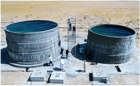- Abdullatif, K. World’s First 3D Printed Concrete Tanks Completed in Kuwait. Available online: https://scenehome.com/Projects/World-s-First-3D-Pri (accessed on 10 May 2024).