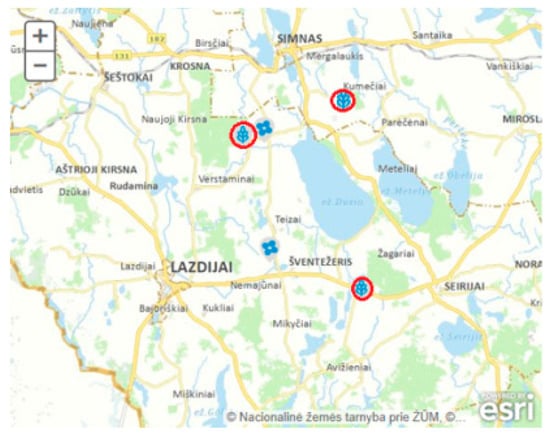 During the study, three different locations in Lithuania with different pre-crops were selected (Figure 1). The experimental sites were chosen so that they were not far from each other due to climatic conditions and soil type. Fields of the winter wheat (Triticum aestivum) variety ‘Skagen’ from farms in the Lazdijai district were chosen for the experiment. The experiment was conducted from 2017 to 2018.