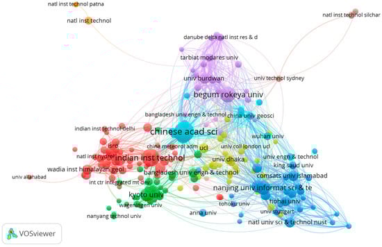 Five clusters were identified as being dominated by India, Pakistan, the USA, Canada, and the Czech Republic. India, Pakistan, and Bangladesh have the most publications from universities and institutes, with the most citations. As per the total documents, citations, and total link strength, the Chinese Academy of Sciences, the Indian Institute of Technology, and Begum Rokeya University are the top three organizations (Table 7) by 16 January 2024.