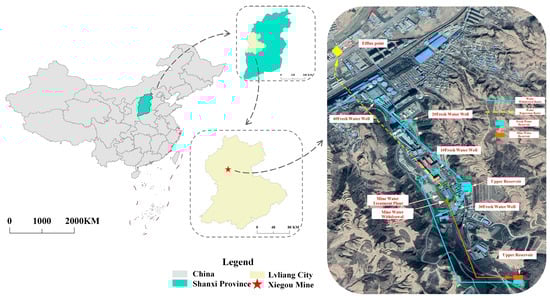 The Xiegou coal mine demonstrates significant output of both coal and mine water. It also employs a relatively standardized process for the utilization of mine water resources, with detailed monitoring of energy consumption and other related data. Consequently, the mine coal possesses considerable research value and representativeness. Figure 1 shows the location of the Xiegou mine.