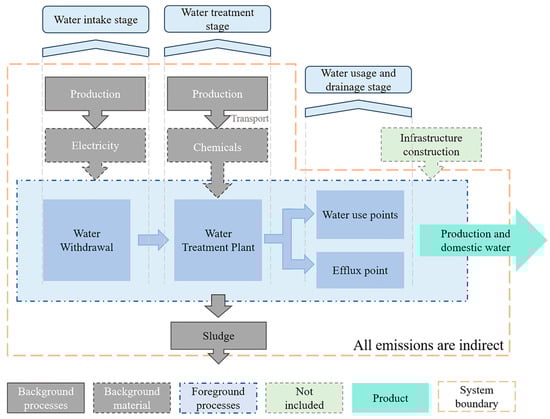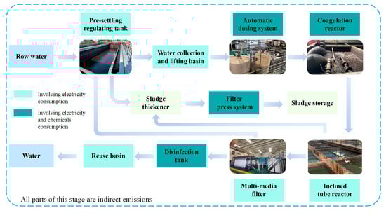 As shown in Figure 2, this study divides the life cycle of mine water resource utilization into three stages. The eFootprint platform was utilized for LCA modeling, which incorporates a China-specific CLCD database. This platform and database have been extensively employed for LCA analysis [37,38].