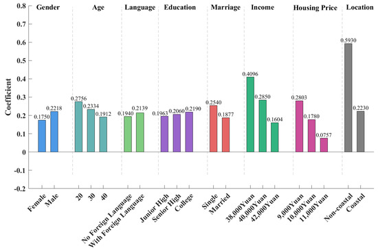 To better illustrate the heterogeneous effects of internet development on labor mobility, Figure 3 provides a visual representation of the results. The figure reveals that urban internet development has stronger effects on males, younger individuals, those with foreign language skills, individuals with higher education levels, and single persons. These findings suggest that internet development particularly benefits high-quality labor, characterized by higher human capital (better education and language skills) and greater potential for human capital accumulation (being young and single). This enhanced effect can be attributed to high-quality labor’s superior ability to utilize internet resources and the greater time and energy available for improving their internet application skills. Figure 3 also reveals that internet development has stronger effects in cities with lower housing prices, lower annual income levels, and inland locations. These findings indicate that strengthening internet infrastructure is particularly effective in attracting labor to less-developed inland cities. The heterogeneity analysis conclusions suggest that emphasizing internet development is a crucial tool for attracting and retaining talent in less-developed regions. Based on these findings, we provide support for Hypothesis 2.