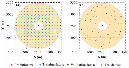 The numerical simulation-based optimization method is an extensive approach to optimizing the well placement, with the advantage of cost saving relative to site exploration [,]. It consists of a numerical simulation process and well placement optimization process. In 1973, Mercer et al. [] constructed a mathematical model of the Wairakei geothermal field to describe the fluid flow and energy transport and pointed out that the hot-water geothermal field can be simulated using numerical techniques. Since then, a variety of numerical models have been proposed to assist the production of geothermal energy [,,,]. In recent years, many advanced simulation methods were also applied in China successfully []. Lei et al. [] built a well-doublet simulation model of the Tanggu area in North China. Their results show that the 100% injection of tailwater can save 94% of geothermal reservoir water-head loss. In addition, Yuan et al. [] proposed a novel vertical production system and found, with the assistance of numerical simulation, that it can reduce 30 Mt greenhouse gas emissions within 30 years. However, the computing load of numerical models has escalated significantly with the demand for more advanced modeling and higher computing accuracy rapidly rising, especially for heterogeneous models [,]. It will pose a considerable challenge to further engineering applications. In such circumstances, surrogate models that can replace complex physics-based simulation models can assume a significant role.