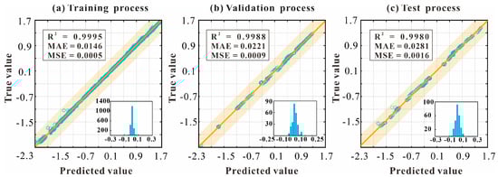 The R-Square (R2), mean absolute error (MAE), and mean squared error (MSE) are applied to evaluate the performance of the surrogate models. The function expressions are as follows []: