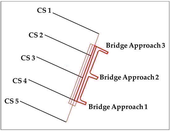 To fully understand the underwater terrain of the dock, a multi-beam bathymetry system was used to scan its full coverage. The high-precision underwater terrain data were obtained, and the data from the previous and subsequent periods were compared and analyzed. The scanning range includes a water area 260 m from the front of the dock, and underwater terrain within a range of 100 m upstream to 100 m downstream of the dock. Within this measurement range, a cross-section was laid out every approximately 120 m, with a total of five evenly distributed cross-sections. The position of the cross-section line is shown in Figure 2. By using a high-precision multi-beam system, precise underwater topographic maps and renderings were obtained. The final underwater topographic measurement results of the dock include an underwater contour map, a three-dimensional underwater topographic map, and a map of erosion and sedimentation changes.