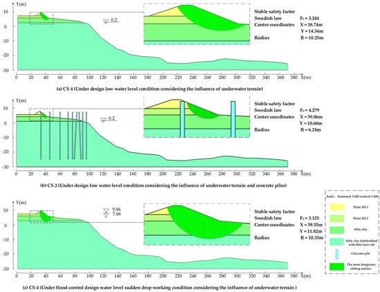 Stability calculation diagram of the CS4 and CS2 sections of the Yuanjin dock considering the influence of underwater terrain.