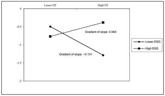 Based on the Signaling Theory [81], in the presence of information asymmetry, the party with superior information can reduce uncertainty by proactively acting to convey reliable information. Companies that excel in ESG typically demonstrate robust risk management systems and heightened organizational legitimacy, demonstrating a commitment to sustainability and enduring value creation, and thus boosting investors’ confidence in the firm [82]. It mitigates the negative perceptions of potential failures and slow returns associated with digital transformation and increases stakeholders’ tolerance for potential short-term operational or financial performance dips during digital transformation, thereby increasing access to external finance and lowering debt costs [83,84].