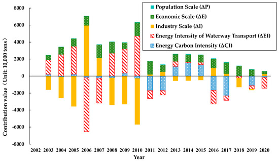 Decomposition of Carbon Emission Factors in China’s Waterway Transportation Industry (2002–2020).