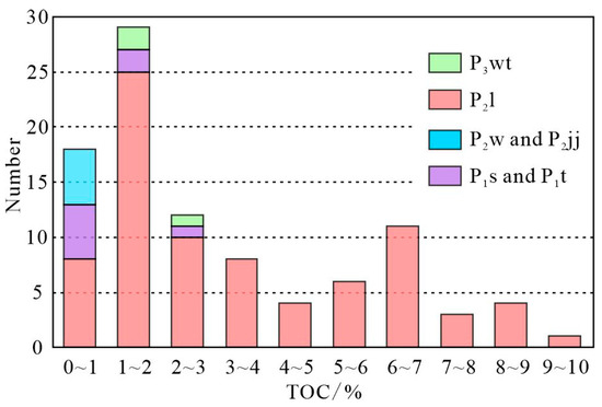 Distribution histogram of total organic carbon (TOC, %) contents for Permian source rock around the Bogda Mountain, Junggar Basin.