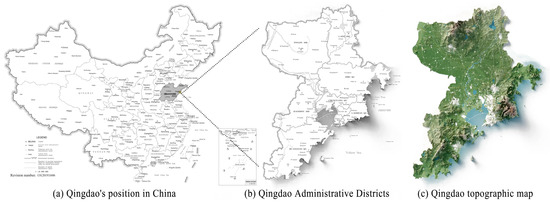 Qingdao City is situated in the southeastern part of Shandong Province, China, bordering the Yellow Sea. It is an important coastal open city and port city. The total urban area is approximately 11,293 square kilometers. The terrain is mainly composed of hills, with some areas being plains. As of the end of 2023, the resident population of Qingdao City was approximately 10.3715 million. Qingdao falls within the temperate monsoon climate zone and features distinct oceanic characteristics. It is one of the typical cities representing a climate with cold winters and hot summers (Figure 1). According to the accounting results of the Carbon Emissions in the Building Sector in Qingdao by the Building Energy Conservation Research Center, the proportion of building construction is 13%, and that of building operation is 19%. Moreover, the proportion of operational energy consumption and emissions will further increase [16]. Based on the comprehensive interaction of urban pattern, climatic conditions, and development elements, the green and low-carbon practice in Qingdao has gradually transformed to the block level of medium and micro scales, and now forms a spatial hierarchy system with the TOD block as the core sustainable development unit [17,18].